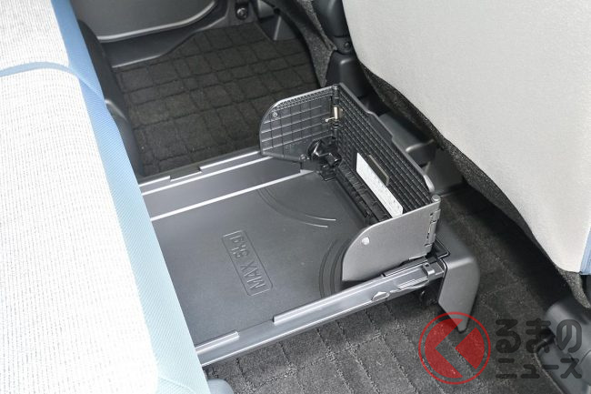Gターボグレードには、女性や若者に配慮した便利な装備が充実しており、「ホッとカップホルダー」(保温機能付き)、「置きラクボックス」(後席足元に収納可能)、運転席・助手席のシートヒーターなど、快適性を高める機能が標準装備されています。