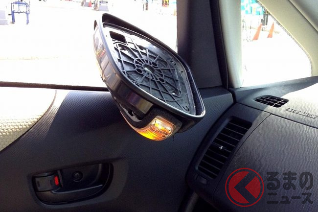 これは、ドアミラーが歩行者と接触した時などに衝撃で畳まれる(あるいは裏返る)ことで、衝撃を吸収しているのです。