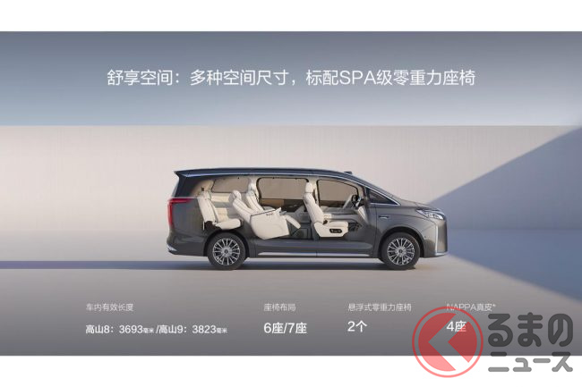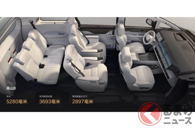 このサイズはアルファードやLM以上となり、メルセデス・ベンツのフラッグシップセダン「メルセデス・マイバッハ Sクラス」の全長5460mmと同様で、中国国内のミニバンでは唯一無二だといいます。