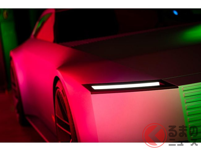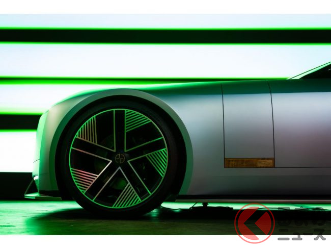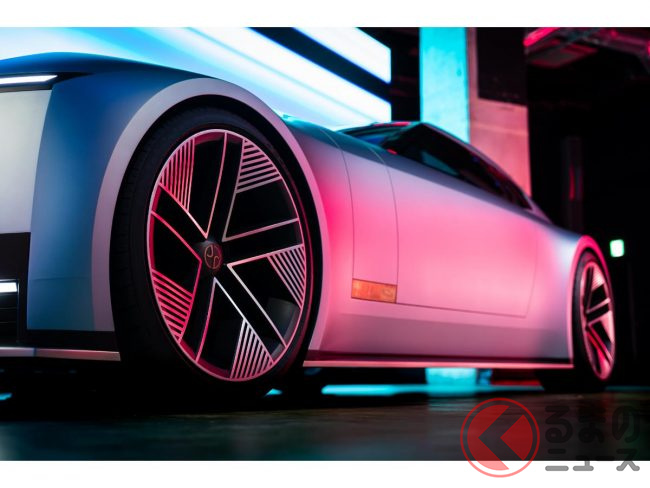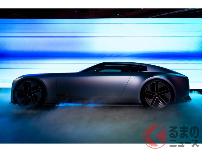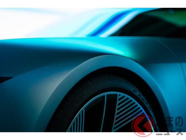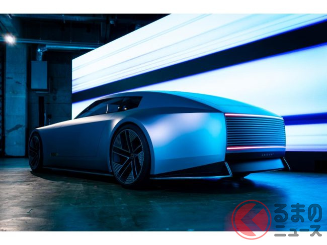 具体的な特徴は、電気自動車(EV)の常識を覆す独創的なスタイリングにあり、長いボンネットや流れるようなルーフライン、ファストバックのプロファイル、そして大径23インチのアルミホイールなど、ドラマチックなシルエットを採用します。