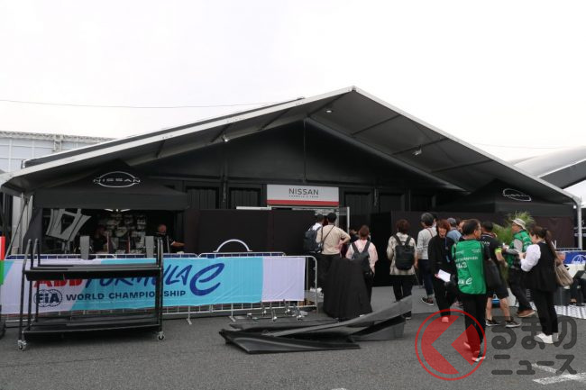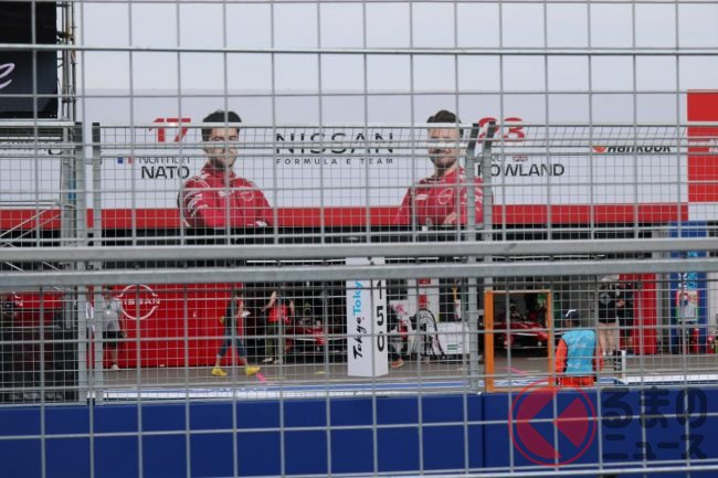 日産の「極秘ガレージ」潜入!“東京の街中”を爆走する「フォーミュラE」開幕! 裏口に置かれていた「謎のボディ」が持つ重要な役割とは?