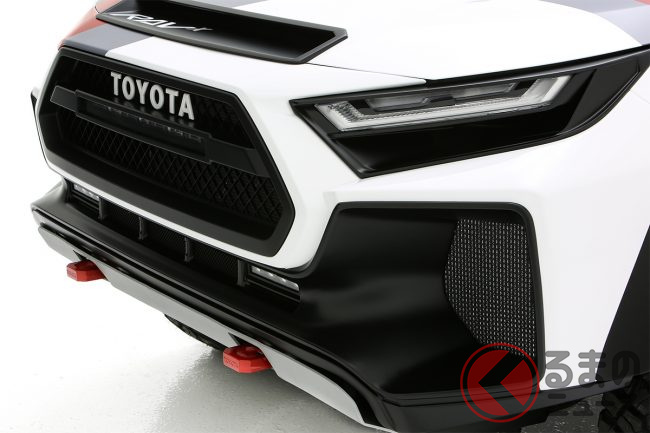 トヨタ「新型RAV4」初公開! 最新サメ顔&カクカクデザイン採用!? 「大人気SUV」7年ぶりの全面刷新! 発表秒読みの「6代目」ティザー画像が公開