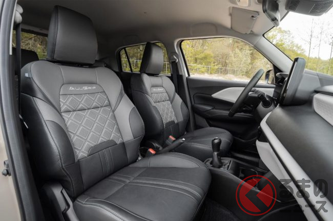 インテリアは、ALL GRIPロゴをあしらったブラック&グレーのレザーシート、ゴム製のマットを採用した防水仕様となっています。