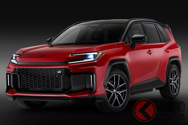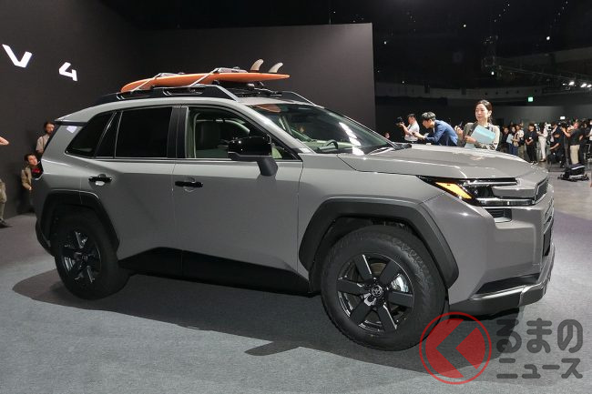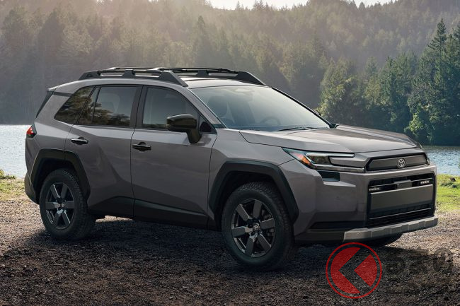 トヨタ新型「RAV4」発表! “320馬力”のパワフルユニット新搭載! 車高を上げたアウトドアな「ウッドランド」&スポーツ仕様「GRスポーツ」初設定! 米国で25年後半発売!