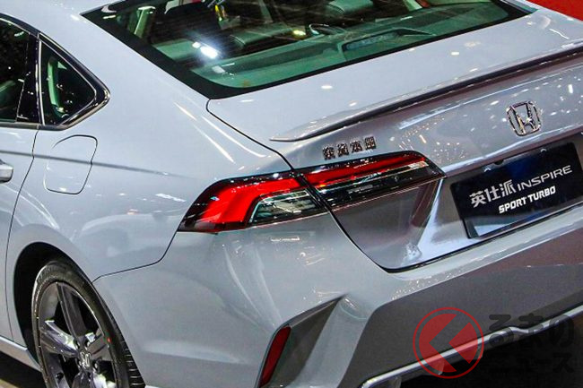 ホンダ最新型「インスパイア」公開! “ベンツ風”グリル採用!? フロントミッドシップ…じゃない!? 6年ぶり復活してた「上級セダン」中国で発見