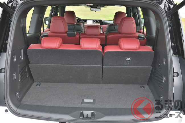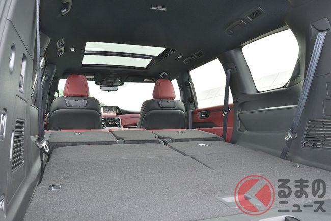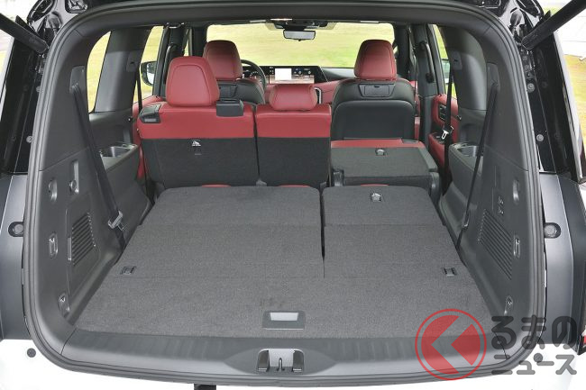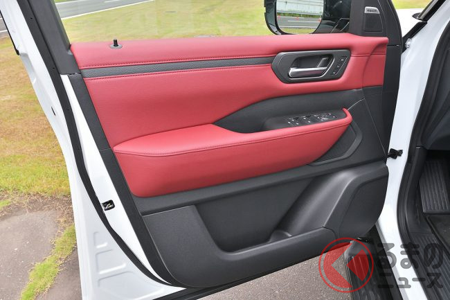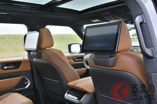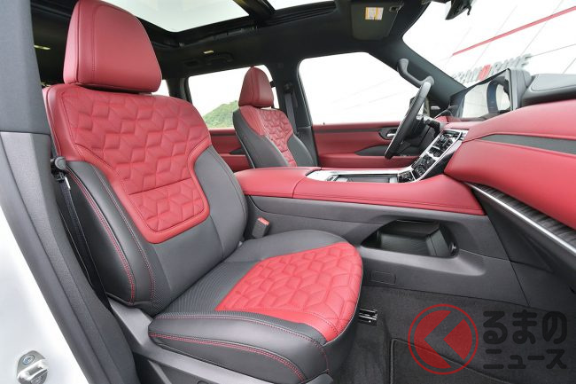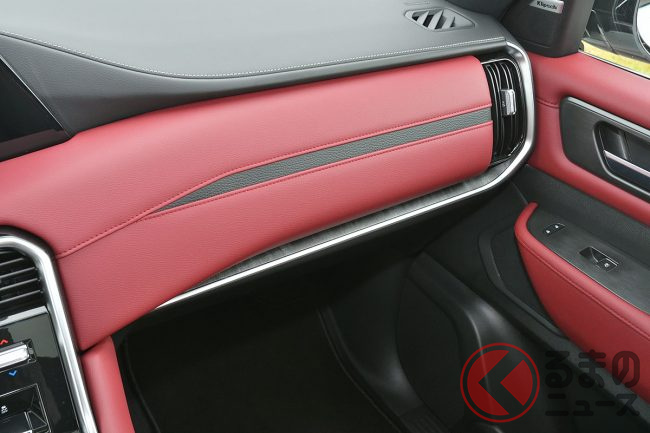 雰囲気作りとして近いのはランクル300の最上級グレードを超えて、ランクル300のレクサス版である「LX」水準で、14.3インチのディスプレイを2つ並べたダッシュボードの先進感もランクル300より上。