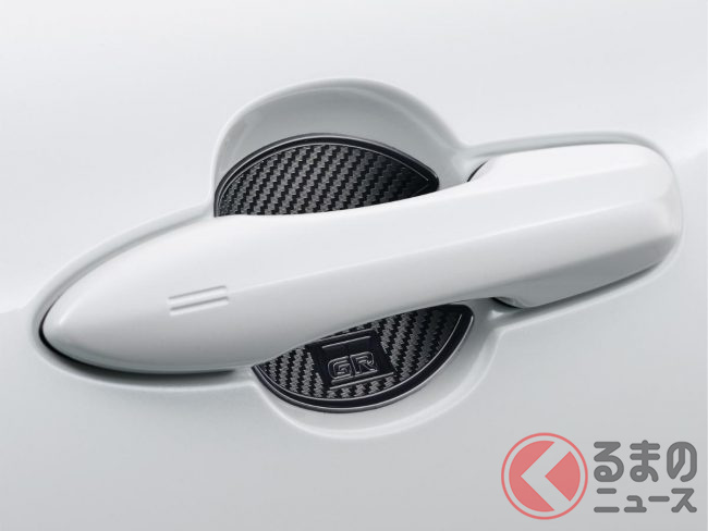 そのほか、ボディ4カ所に貼り付けることでボディへの帯電を取り除き、車両本来の性能を引き出す「GRディスチャージテープ(5500円)」や、ドア開閉時のひっかき傷を防止するとともに、ドアハンドルまわりをスポーティにドレスアップする「GRドアハンドルプロテクター(6600円/1台分)」など、GRブランドらしいスポーティなアイテムを多数取り揃えました。