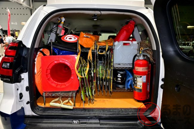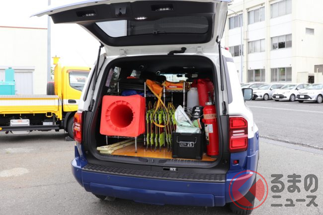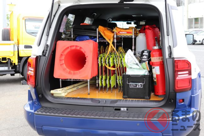 ランクル250は優れた走破性と耐久性を備え、緊急対応に必要な多様な器材を効率的に運搬できる広い積載スペースを持っています」