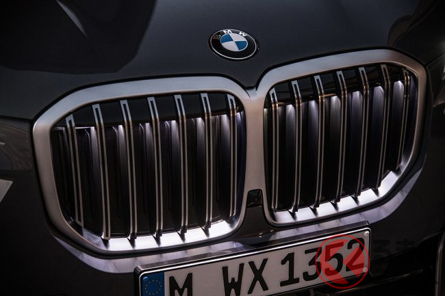 BMWを象徴する縦型の巨大な「キドニーグリル」など、押し出しの強いデザインを採用したほか、室内には最上級素材を採用した豪華な3列シートを設定。
