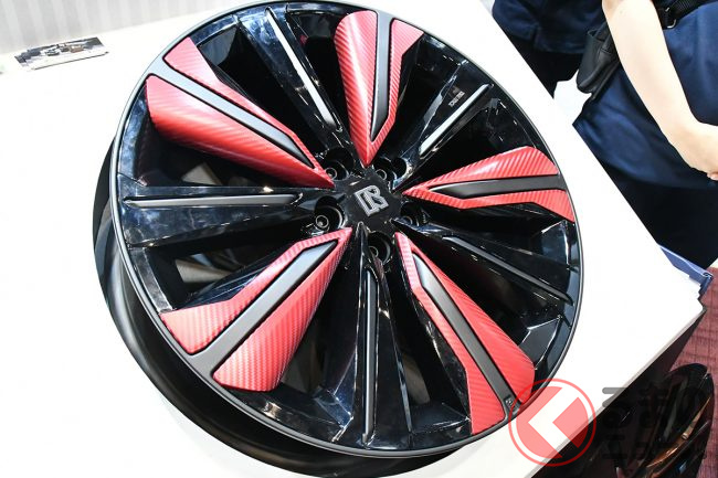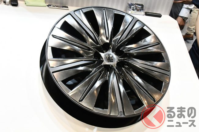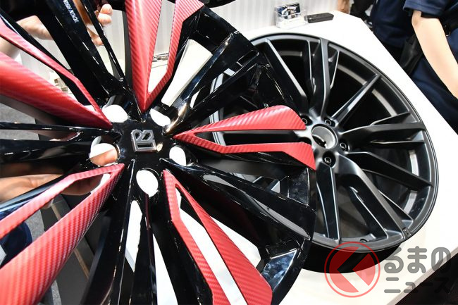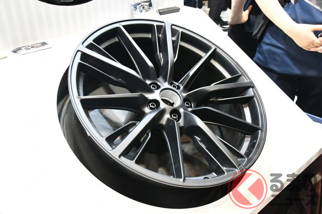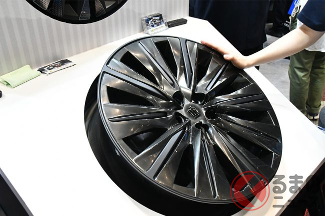 なかでも注目を集めていたのは、「WFO(R)(ホイールフルオーナメント)」です。これは車両のアルミホイールの上から加飾意匠部品のカバーを装着するもので、トヨタのクラウンエステート(21インチホイール)に採用されています。