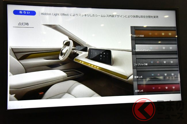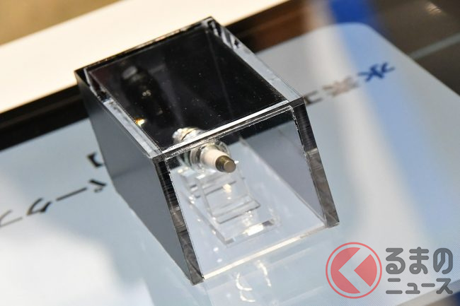 従来もアルミホイールに加えて樹脂製のキャップを装着し、空力性能の改善や向上を図る製品はありました。しかし今回の展示品はその効能だけでなく、新開発された塗料によってアルミホイールに遜色ない金属質感を実現しており、ブースには実際にクラウンエステートに採用されているものに加え、東海理化としてさまざまな意匠バリエーションが実現できる参考例として、2つのデザインカラーバリエーションも展示されていました。