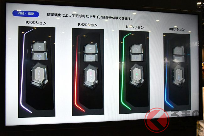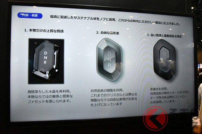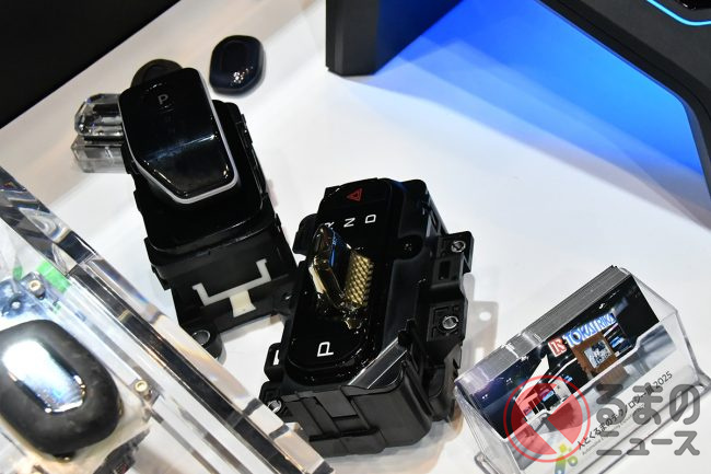 東海理化のブースでは、モビリティ業界を取り巻く環境が大きく変化し、また社会価値や社会機能も多様化するなか、安心安全で豊かな「Mobility Life」と持続可能な社会の実現に貢献するため、「Mobilityの変化に対応する新商品」と「持続可能な社会の実現と安全に貢献」という2つのテーマを軸に、新製品や新技術などが展示されていました。
