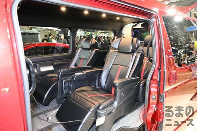 フロントフェイスは、ランクル300そのものでベース車両がハイエースとは気が付かないレベルで、展示を見た人から「一瞬、脳がバグった」とも言われるほどでした。