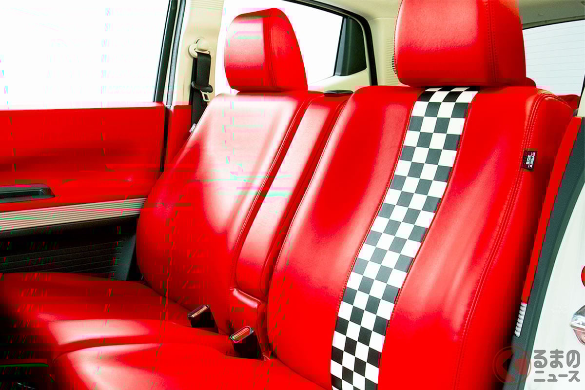 インテリアのデザインも個性的で、内装色は「ブライトロッドスタイル(ベージュ)」「ストリートロッドスタイル(ブラック)」「ダイナースタイル(レッド&チェッカーフラッグ)」「グライドスタイル(ホワイト&ライトブルー)」「セッションスタイル(ブラウン&ブラック)」の5色から選択可能。