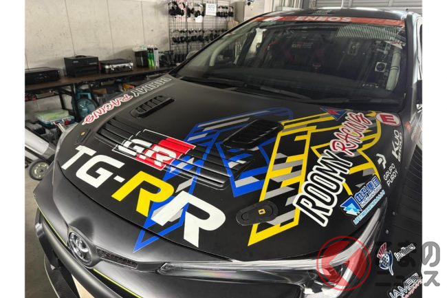 水素エンジン搭載のGRカローラに「ROOMY Racing」ステッカーが登場