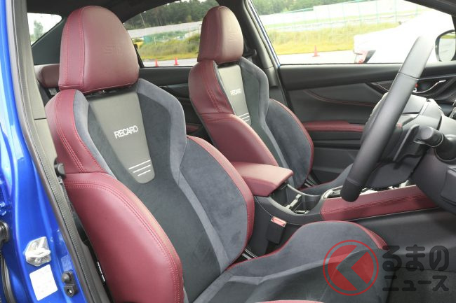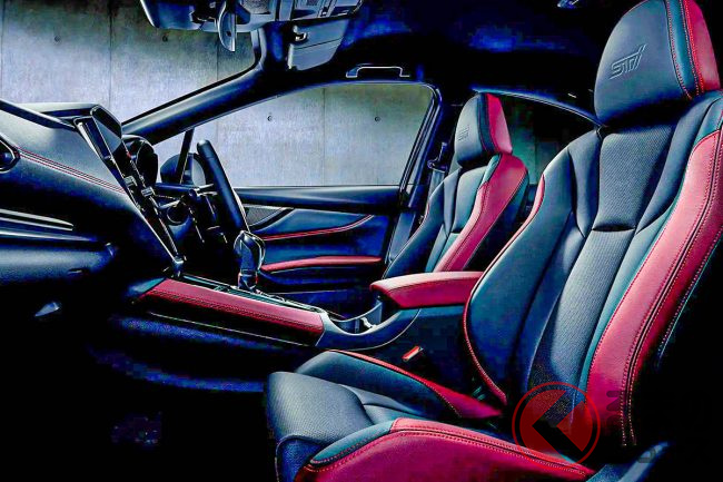 一方内装は5人乗りのレイアウトとし、インパネミッドトリム、およびドアトリムをレッドステッチ入りのスエード調にするとともに、ブラックのRECARO製フロントシート(STIロゴ入り/運転席8ウェイパワーシート)を採用。