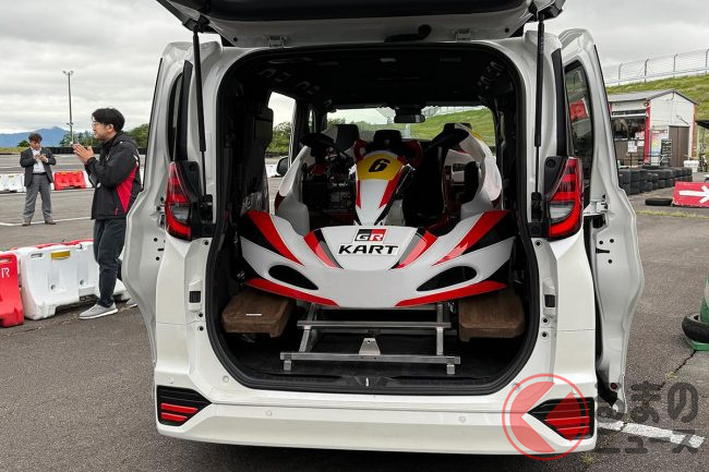 また、従来カートの運搬にはトヨタ「ハイエース」など大型バンが必要でしたが、その運搬の課題を解決するため、GR KARTではトヨタのミニバン「ノア」や「ヴォクシー」などのファミリーカーに載せて運べるサイズに設計されました。