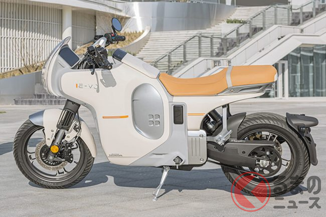 ホンダ新型「カフェレーサー」初公開! 斬新「ブーストモード」&軽量「アルミスイングアーム」採用でめちゃ楽しそう! ドラレコを標準装備したバイク「E-VO」が中国に登場!