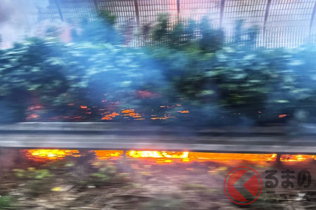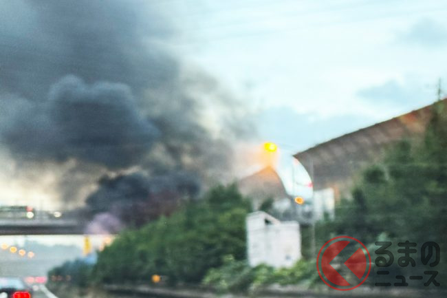 驚愕!? 「黒い煙が…」「車両が燃えている…」 日曜夕方に高速道で火災発生! 現場の様子は? 車両火災が起きる原因とは