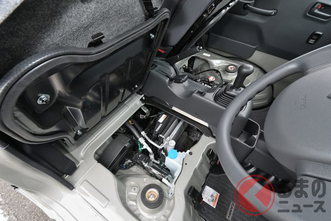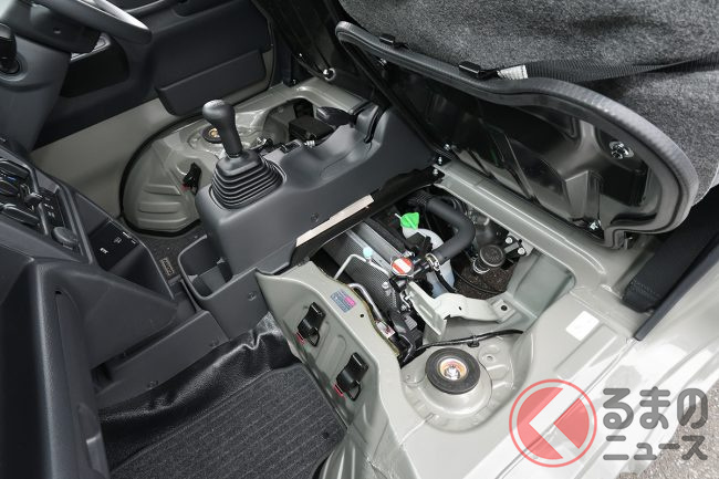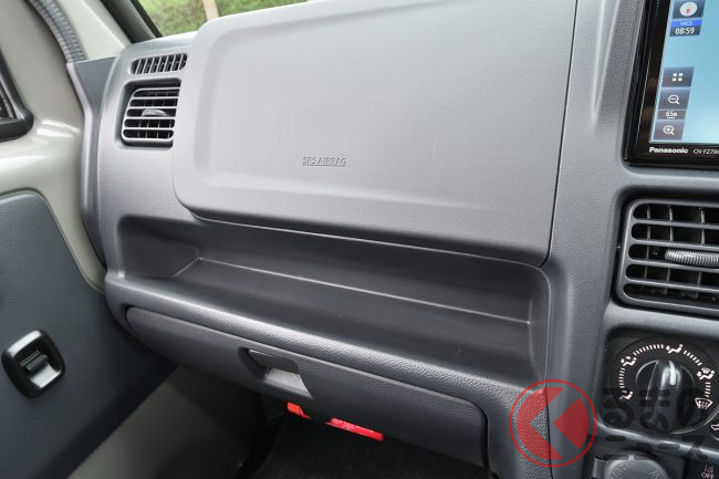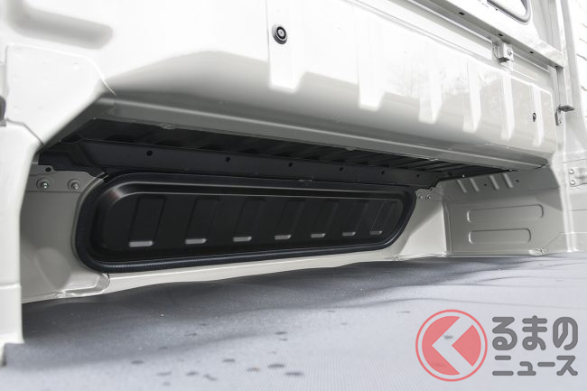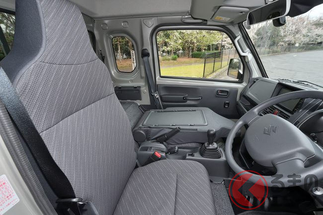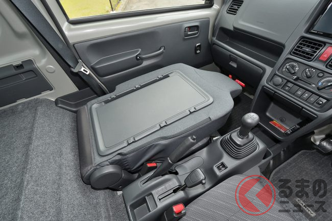 このスーパーキャリイでは、運転席のシートスライド量を180mmと拡大したほか、リクライニングも40度の可動域を確保したことで、車内での着替えやちょっとした休憩などにも使える広さを実現しています。