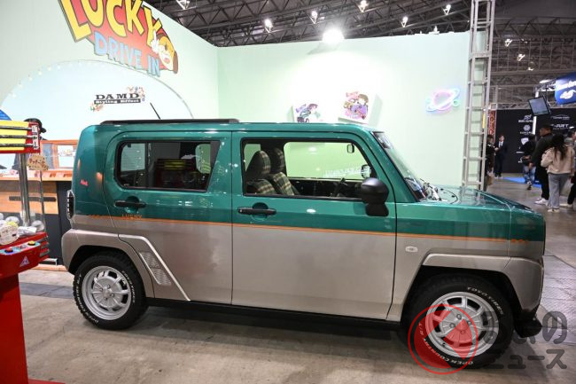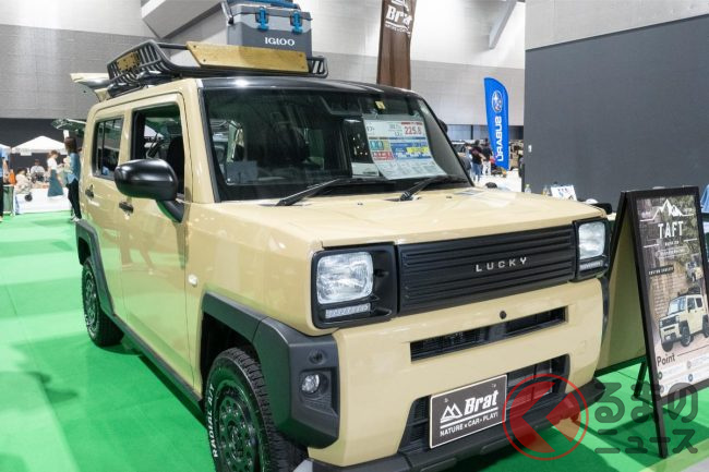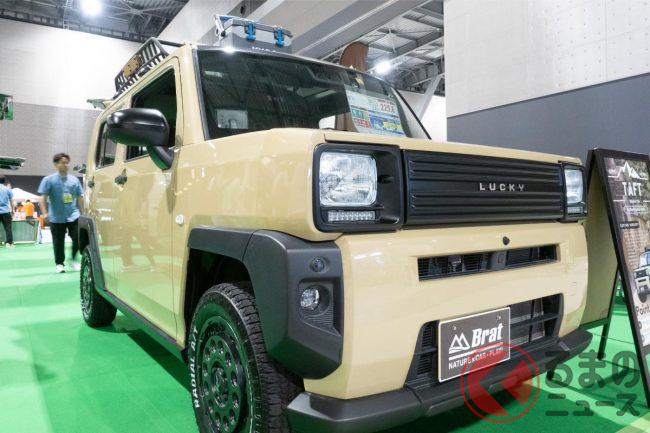 レトロ顔のダイハツ「タフト」公開! “軽”ロッキーな旧車デザインの「5ドア軽SUV」!約225万円の「Brat仕様」とは