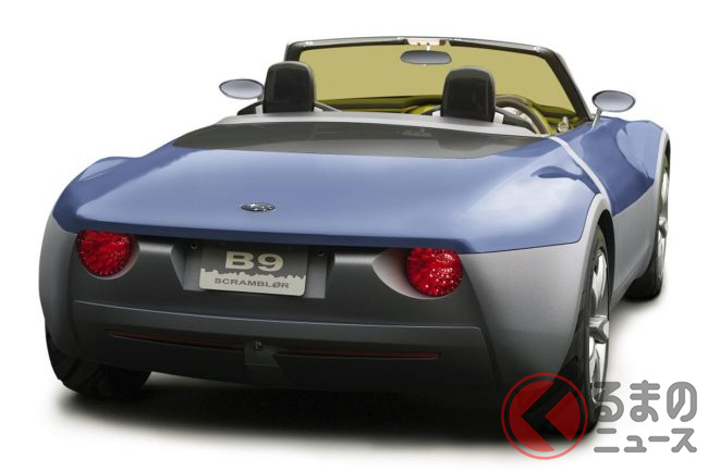 このB9スクランブラーとは、2003年に開催された「第37回東京モーターショー」でスバルが発表した、オープン2シーターのコンセプトモデル。