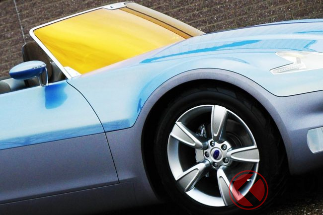 「オンロード・ラフロードを問わず走れるオープンカー」をテーマとするB9スクランブラーのエクステリアは、シルバーの塊から削り出したような重厚感のあるフォルムに、「スプレッドウィングスグリル」という、当時のスバル独自のフロントデザインを取り入れているのが特徴。