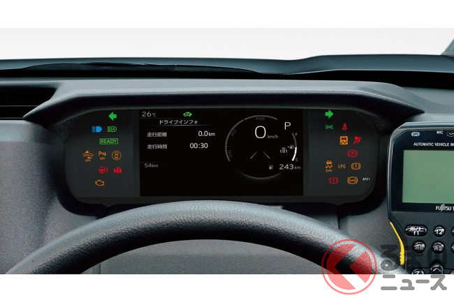 今回の一部改良では、LPGタンクの容量を52リッターから58リッターに拡大することで、一回の充てんによる航続可能距離が延伸。LPG充てんのロスタイムを減らし、長距離客にも対応しました。さらにメーターデザインを視認しやすいものに変更しています。