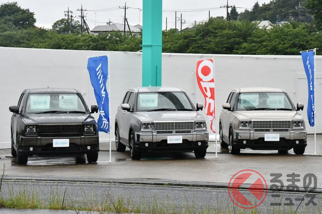 「ルイス」はダイハツのタフト、「サンディ」はスズキのスペーシアがベース車両となっており、それぞれ「丸目」「角目」の2種類のフェースを選択できるようになっているほか、クロムメッキのフロントバンパーやグリルなどへ交換されており、ベース車両とは異なる大胆なスタイリングへと変貌しています。