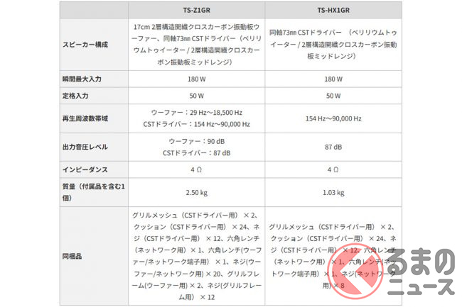 「TS-Z1GR」は17cmのセパレート3ウェイスピーカーで、単体でハイエンドシステムを構成できるフラッグシップモデルです。一方の「TS-HX1GR」は7.3cmの2ウェイハイレンジモデル。既存のウーファーユニットと組み合わせることでシステムアップが可能です。