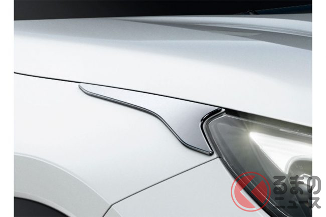 シャープなブレード加飾には車両に合わせた金属調塗装が施され、リヤランプと呼応する立体感を生み出しています。