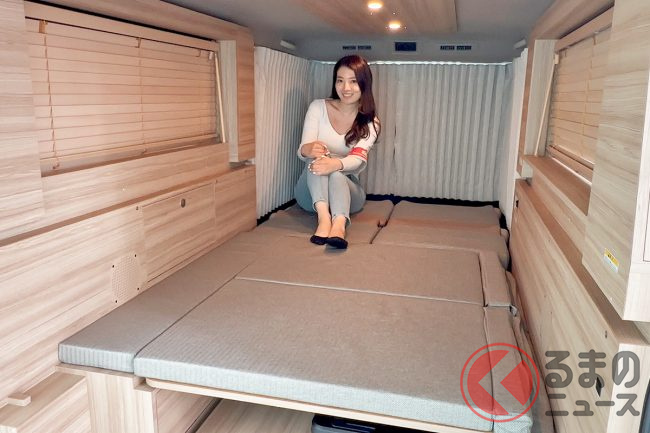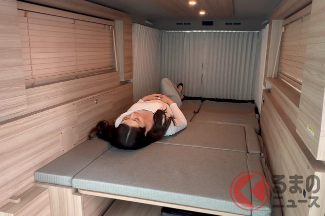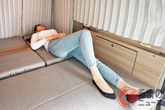 日産の「“車中泊専用”バン」がスゴすぎた! めちゃ快適「木目オシャレ空間」に180cm超え「巨大ベッド」装備! 新たな「マイルーム」シリーズで実際に「寝てみた」印象は?