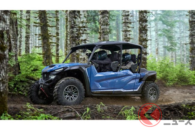 ヤマハの「斬新“4人乗り”ATVスポーツモデル」が凄い! 全長4m級ボディ×「1リッターエンジン」採用! 本格「4WD」搭載で超楽しそう! ほぼ“乗用車”な欧州「四輪マシン」とは
