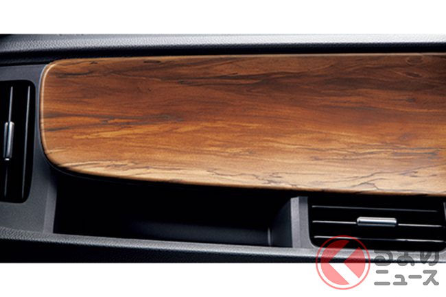 内装では、ブラックとブラウンを基調とした配色に、タンウッド調のインパネガーニッシュやタンカラーのドアアームレストを組み合わせ、大人っぽく落ち着いた空間を演出。