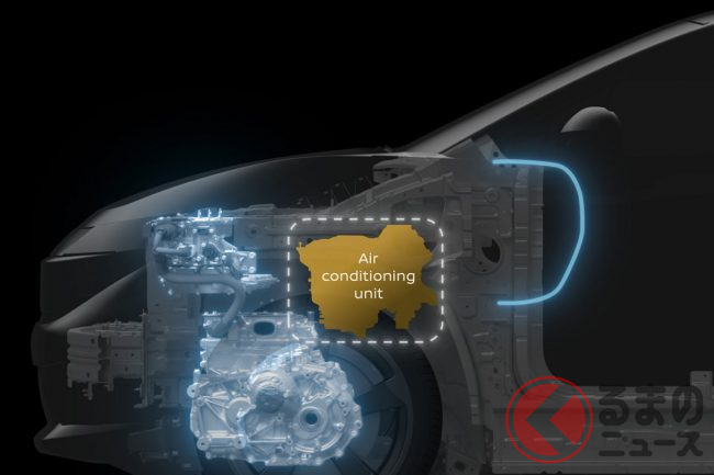 さらにパワートレインの小型化に伴い、空調ユニット(HVAC)を室内ではなくフロントボンネット内のモータールーム内に配置することで室内空間を向上させています。