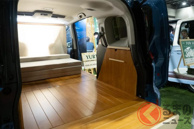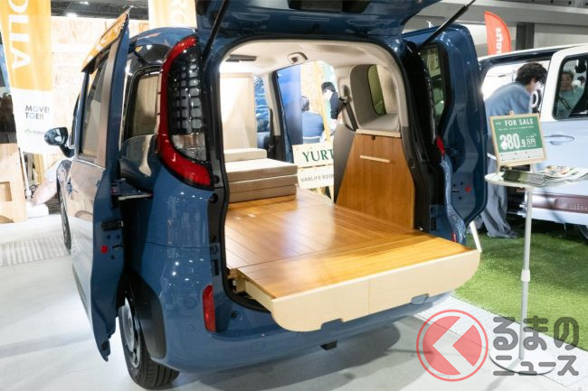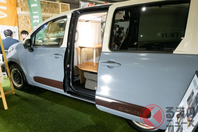 “超ウッド内装”のトヨタ「シエンタ」! 5人乗りに即“変身する”「車中泊仕様」! 約59万円で大変身の「YURT VANLIFE ROOMKIT」登場