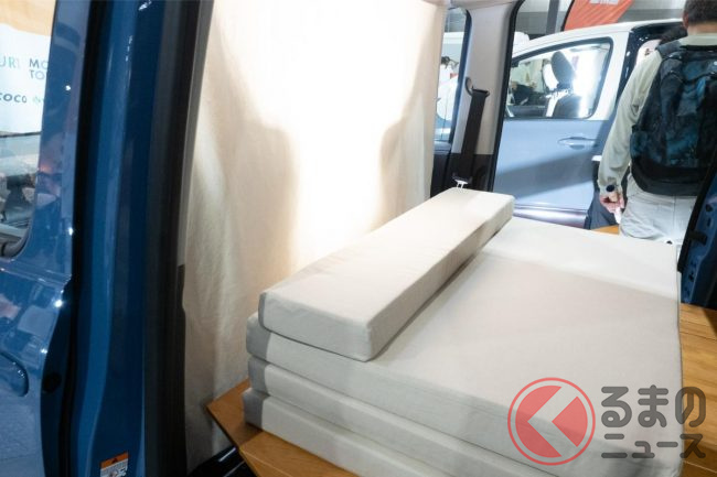 「ルームモード」ではフルフラットで大人2人が余裕をもって寝られる広さを実現。フルフラットのルームモードから10秒程度で折りたたみ収納すると「乗用車モード」となり、5人乗りのミニバンとして普段使いすることが可能です。