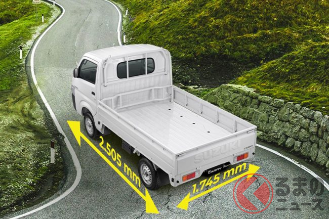ボディサイズは全長3750mm×全幅1695mm×全高1860mm、軽自動車規格より大きいものの、小型商用車の4ナンバーサイズにおさまり、非常に短い全長を持ちます。