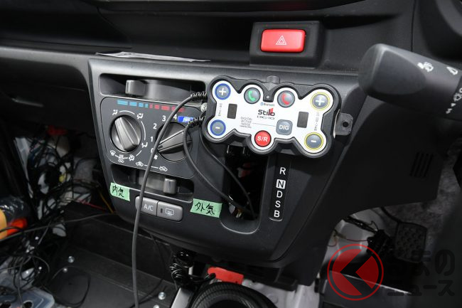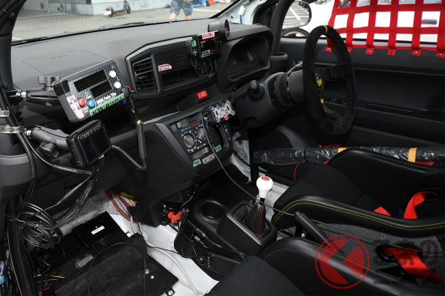 ブラック基調の内装には、赤のパイピングを用いたコーディネートを採用。ステアリングはMOMO社製、シートはRECARO社製のスポーツシートを搭載するなど、シンプルなベーシックカーのミライースとは異なる、スポーティな仕立てが際立ちます。