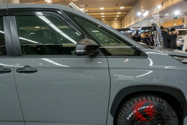 加えて、足元にはデルタフォース製のホイールとヨコハマタイヤ製のジオランダーA/T、それに35mmリフトアップキットを組み込み、全体的にSUVの雰囲気を感じさせる1台に仕上げています。