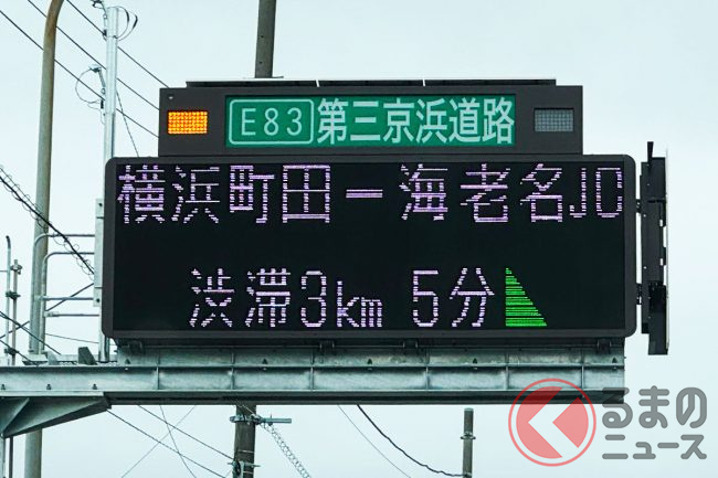 そんな道路情報板に、「横浜町田−海老名JCT 渋滞3km 5分▲」などと、渋滞情報といっしょに緑や赤の「▲(三角マーク)」が表示されることがあります。