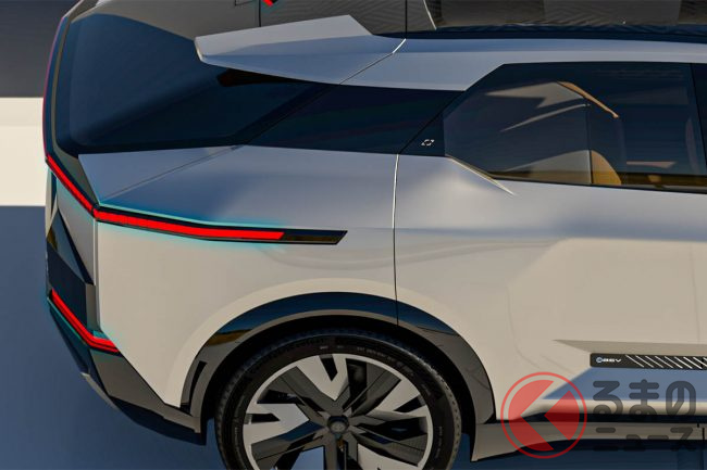 エクステリアは直線を多用したカクカクとしたデザイン。サイドでは、ボディの下部からドア上部に沿ってデジタルサイネージを配置。ドライバーがクルマに近づくと、バッテリー残量や車内温度などの情報を表示します。またリアには横一文字のテールライトを配しています。