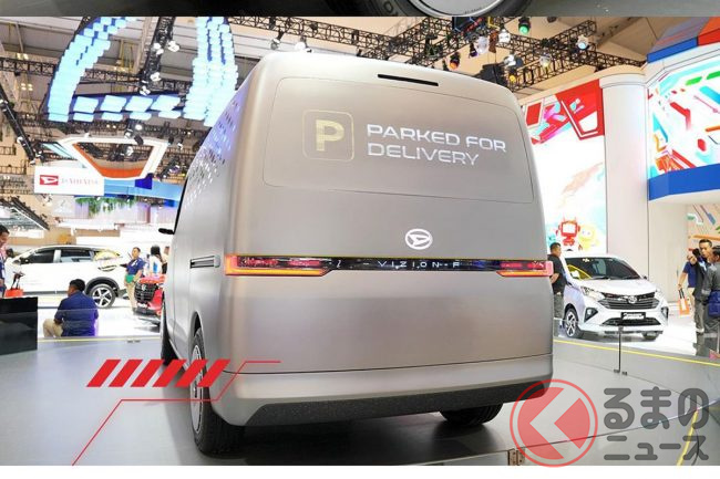 ダイハツ「斬新“窓なし”小型バン」がスゴかった! まさかの“ツルツルボディ”×精悍「一文字ライト」を採用! 「次期タウンエース!?」想起させる「VIZION-F」尼コンセプトカーとは