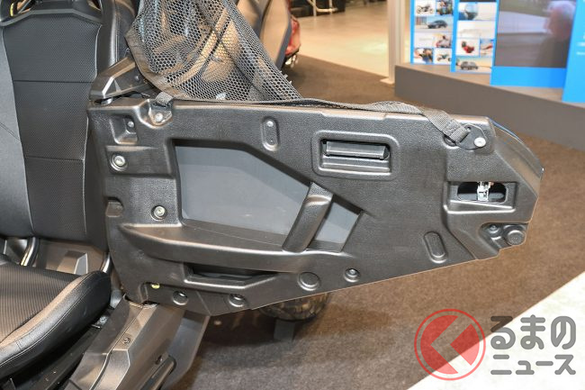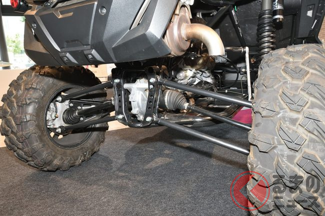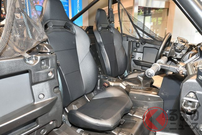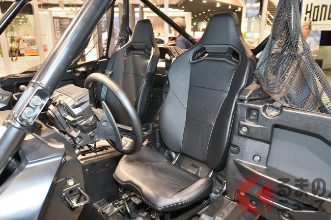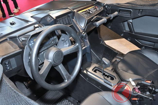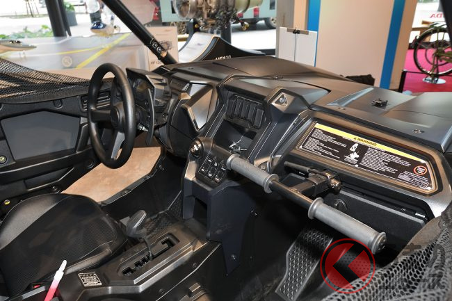 サイド・バイ・サイド・ビークルとは、バイクのパワートレインを搭載した四輪バギーのことで、丸いハンドルと横に並んだシートを備えた、クルマに近いイメージといえるでしょう。
