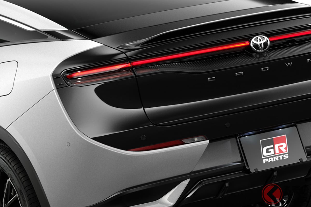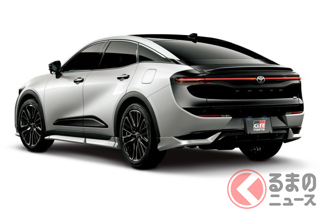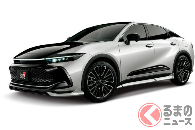 トヨタ「クラウンクロスオーバー」“本格スポーティモデル”がスゴい! シャコタン風エアロ装着で走行性能アップ! ド迫力な「GRパーツ」のドレスアップ仕様とは!