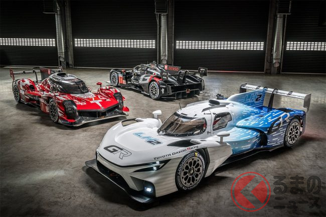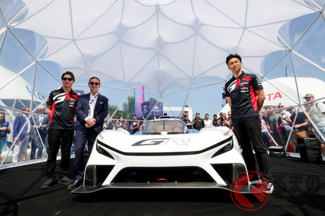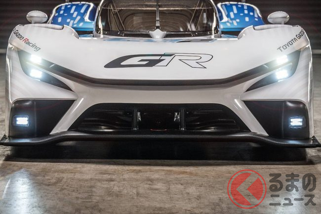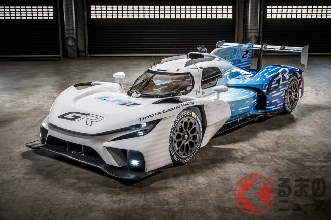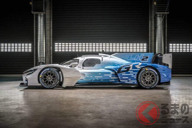 トヨタ“新”「スーパーマシン」世界初公開! 全長5.1mボディ&大型リアウィングが超カッコイイ! 斬新パワトレ採用の「GR LH2 Racing」フランスで披露