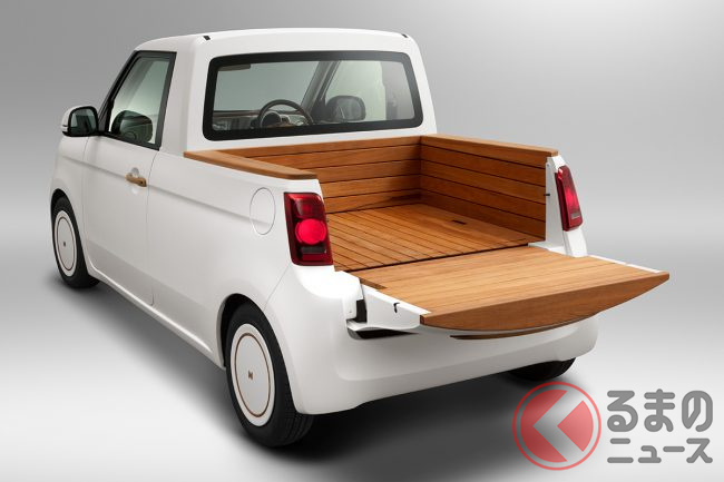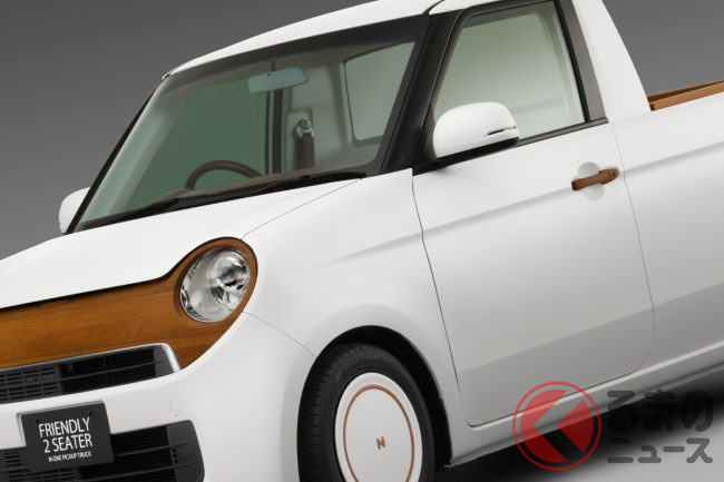 ホンダの斬新「“丸目”軽トラ」に反響あり! 「絶対いい!」「爆売れ確実!?」と称賛の声も! 快適2人乗りシート×便利な荷台がスゴかった! 「N-ONE ピックアップトラック」とは!
