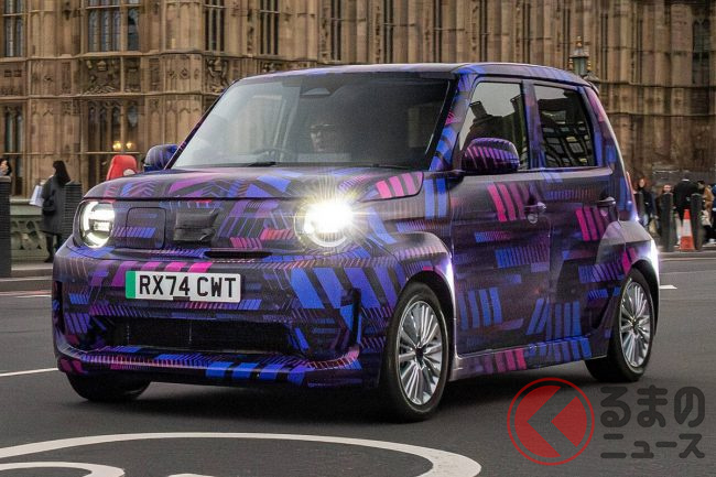 丸目ライトや背の高いスタイリングは、ホンダの軽ハイトワゴン「N-ONE(エヌワン)」に酷似していますが、一方でワイドフェンダー化されボディ幅が拡幅されていることも確認できます。