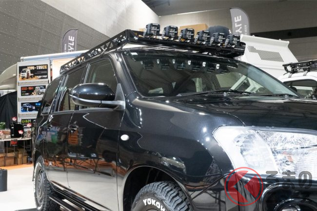 さらに屋根にはルーフライトとラックを設置。ルーフラックはプロボックスの溝にはめ込むような形で取り付けてられており、ユーザー自身でも装備できるようになっています。