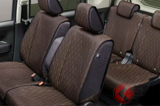 生地にはブラウンカラーに自模様が施されており、インテリアパネルのブラウンと合わせてコーディネートをすれば、車内の雰囲気をよりモダンに大きく変えることもできます。